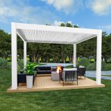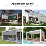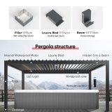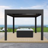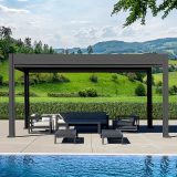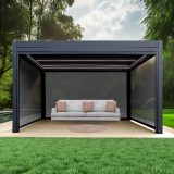 Pergola IM18 er en luksuriøs og moderne pergola med motoriseret tag og integrerede LED-lys. Med standardstørrelser på 3 x 3 x 2,5 m og 3 x 4 x 2,5 m giver IM18 fuld kontrol over skygge og ventilation ved hjælp af et inkluderet motoriseret kontrolsystem med fjernbetjening. Denne pergola har søjler på 15 cm og er lavet af slidstærkt aluminium, hvilket gør den perfekt til alt fra udestuer og svømmebassiner til spabade og carporte. Den vejrbestandige design og muligheden for tilpasning med rullegardiner gør IM18 til et stilfuldt og funktionelt supplement til dit udendørsområde.