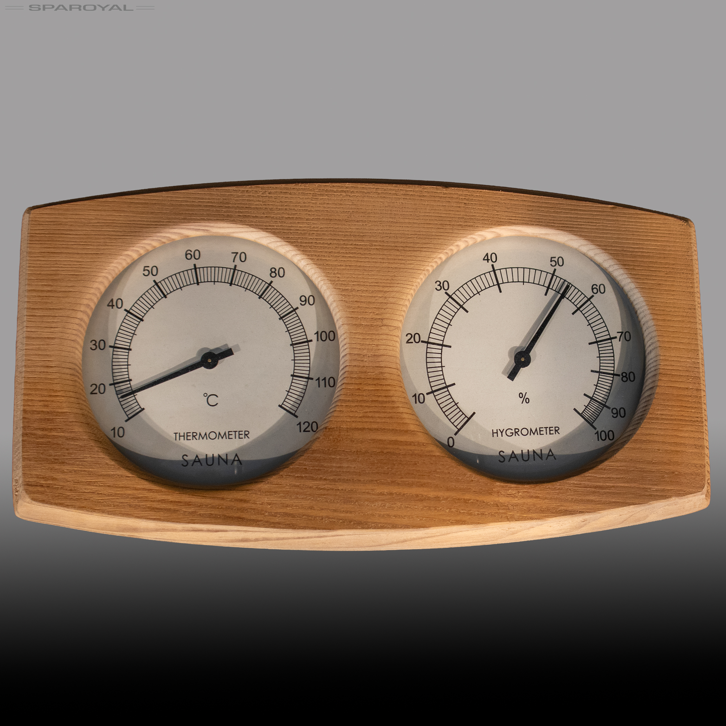 Den robuste træramme giver et varmt, naturligt udtryk, der passer ind i enhver sauna – både moderne og klassisk. De to runde målere har tydelige skalaer, så værdierne er nemme at aflæse, selv når man sidder i dæmpet belysning.
